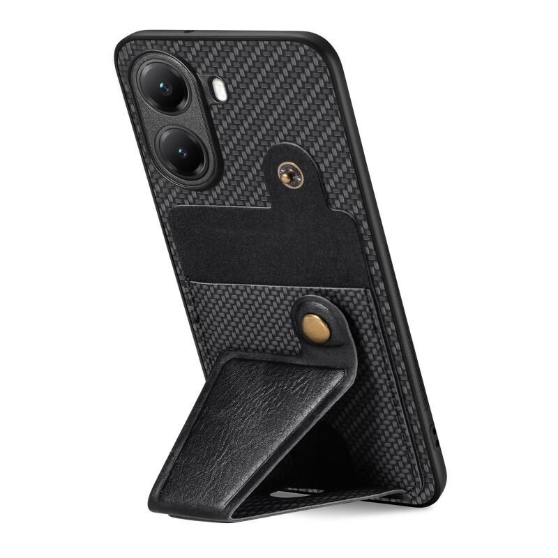 Θήκη τηλεφώνου για Redmi Turbo 4 από ανθρακονήματα, τύπου πορτοφολιού, με κάρτες και σχήμα K (Μαύρο)