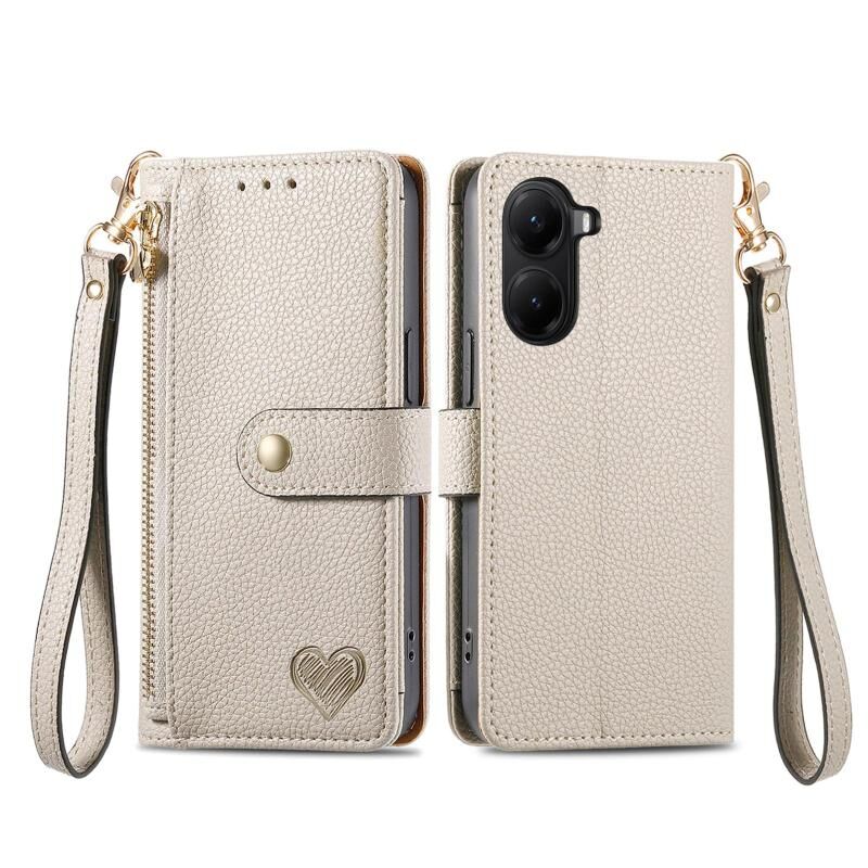 For Redmi Turbo 4 Love Zipper Lanyard Leather Phone Case(Gray)