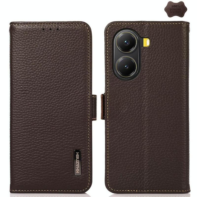 Θήκη τηλεφώνου με μαγνητικό κλείσιμο και γνήσιο δέρμα Litchi για Redmi Turbo 4 / Poco X7 Pro KHAZNEH (Μαύρο)