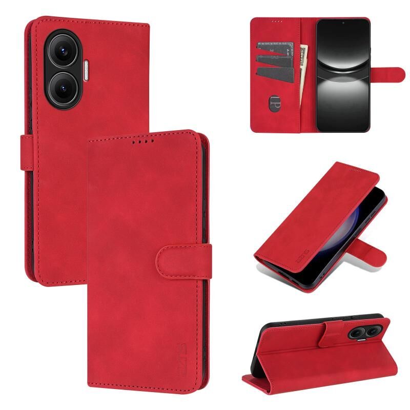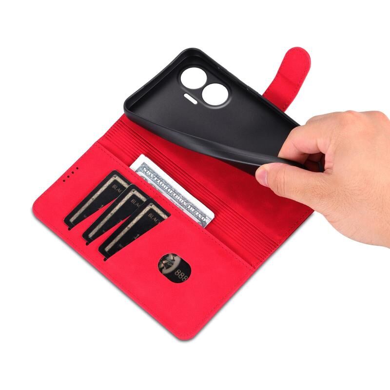 Θήκη τηλεφώνου από δέρμα με υφή μοσχαριού, τύπου flip, για Redmi Turbo 4 Pro (Μαύρο) (Κόκκινο)