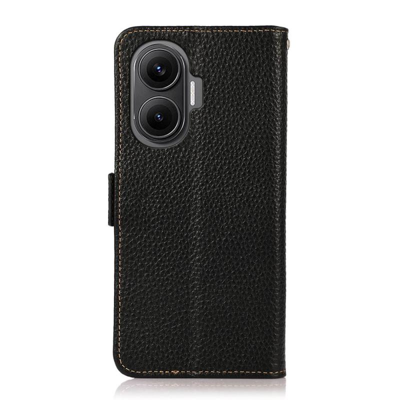 For Redmi Turbo 4 Pro KHAZNEH Side-Magnetic Litchi Genuine Leather RFID Phone Case(Black)