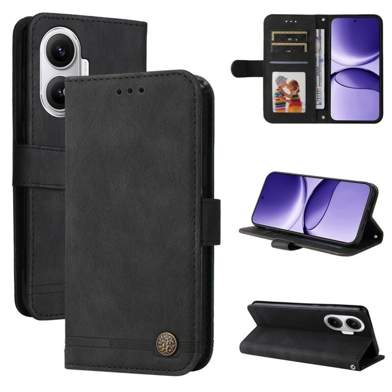 Θήκη τηλεφώνου από δέρμα με μεταλλικά κουμπιά και αίσθηση δέρματος για Blackmi Turbo 4 Pro / Xiaomi Poco F7 (Μαύρο)