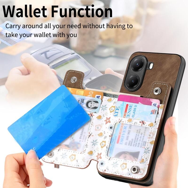 2. Λειτουργία πορτοφολιού: Η δερμάτινη θήκη είναι εξοπλισμένη με υποδοχές για κάρτες και ένα μικρό ποσό μετρητών.