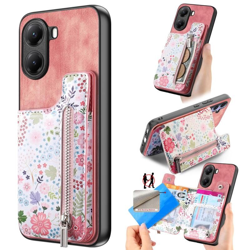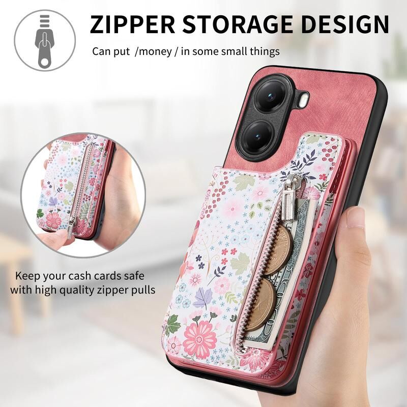 Θήκη κινητού τηλεφώνου με φερμουάρ και σχέδιο retro για Redmi Turbo 4 (Ροζ)