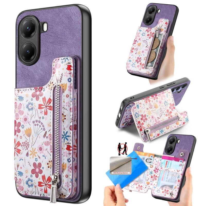 Θήκη κινητού τηλεφώνου με φερμουάρ και σχέδιο retro για Redmi Turbo 4 (Ροζ)