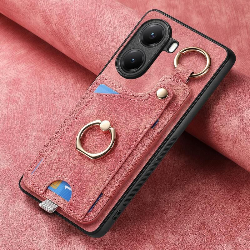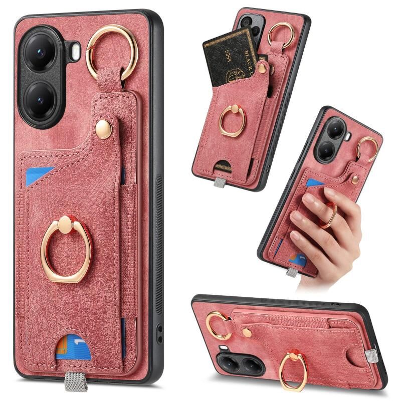 Θήκη τηλεφώνου για Redmi Turbo 4 με ρετρό υφή, δακτύλιο κάρτας και θηλιά για κρέμασμα (Ροζ)