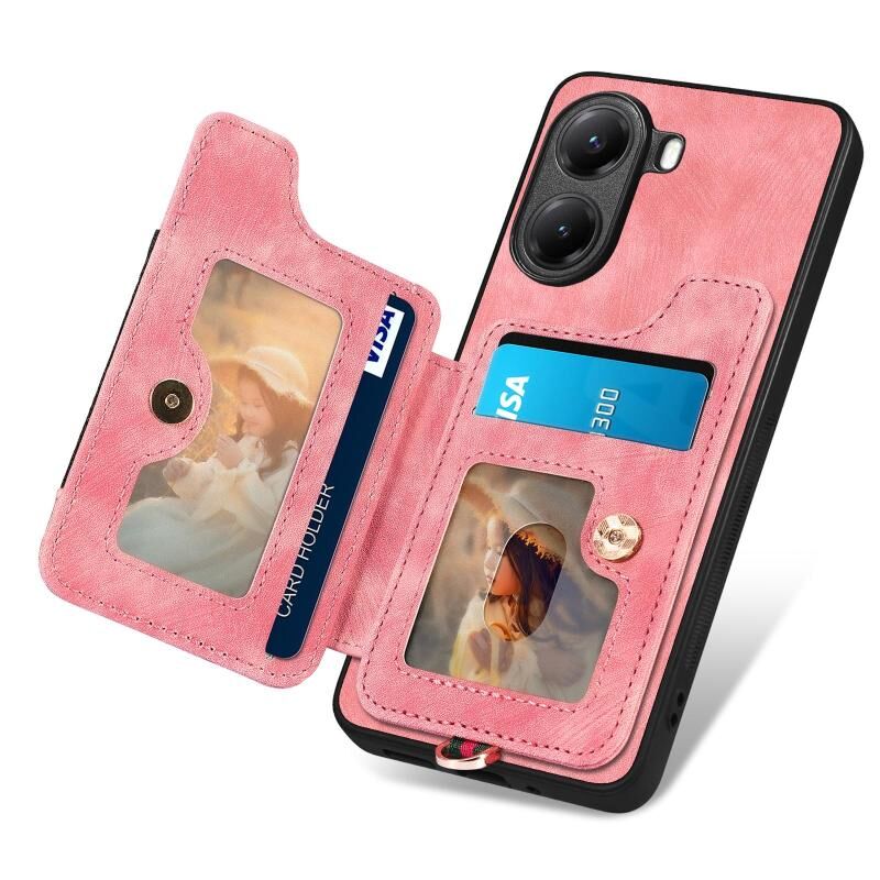 Θήκη τηλεφώνου Redmi Turbo 4 με ρετρό υφή, δακτύλιο και πολλαπλές θήκες για κάρτες RFID (Ροζ)