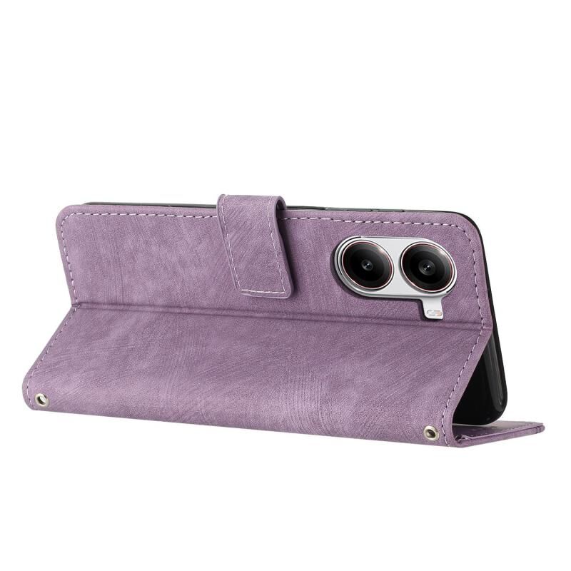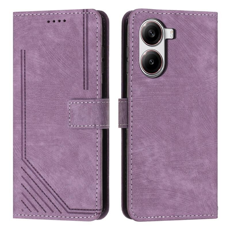 Για Redmi Turbo 4 / Xiaomi Poco X7 Pro Skin Feel Stripe Pattern δερμάτινη θήκη τηλεφώνου με μακρύ κορδόνι (Μωβ)