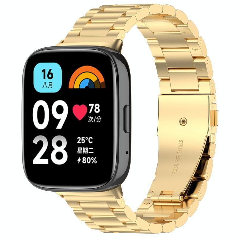 Για το Redmi Watch 3 Active Τρεις χάντρες από ανοξείδωτο χάλυβα μεταλλικό λουράκι ρολογιού (χρυσό)