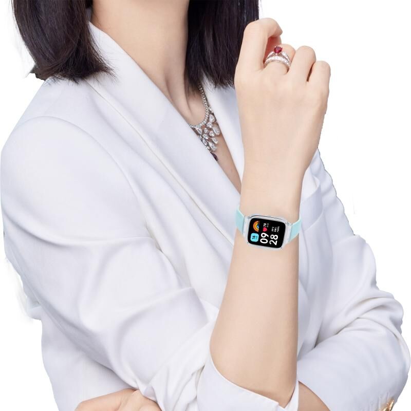 For Redmi Watch 3 Lite Metal Frame Integrated Genuine Leather Watch Band(Sky Blue)