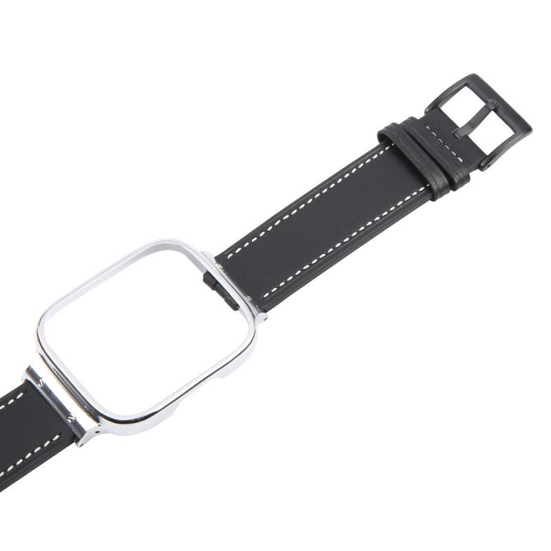 For Redmi Watch 3 Lite Metal Frame Integrated Leather Watch Band(Black)