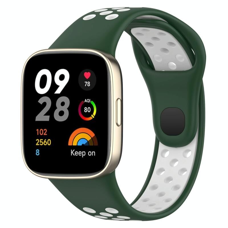 Για το Redmi Watch 3 Lite Αθλητική ζώνη ρολογιού σιλικόνης δύο χρωμάτων (σκούρο πράσινο + λευκό)
