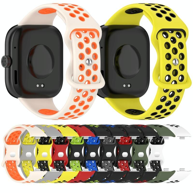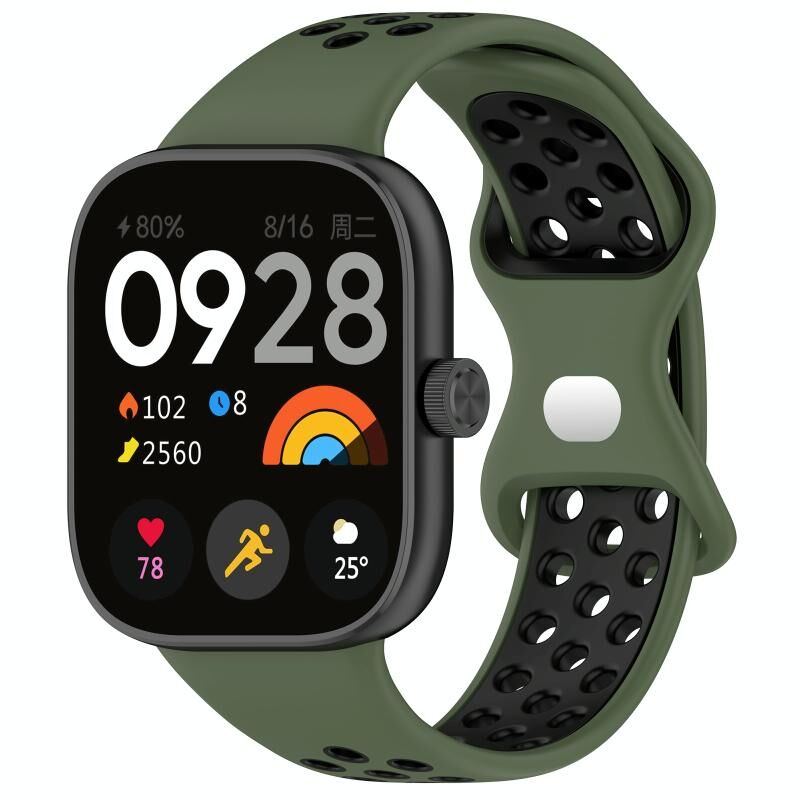 For Redmi Watch 4 Dual Color Perforated Silicone Watch Band(Olive Green Black)