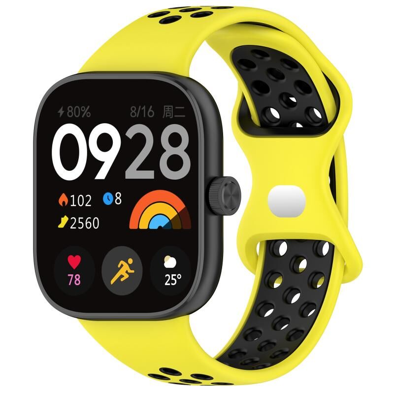 For Redmi Watch 4 Dual Color Perforated Silicone Watch Band(Yellow Black)