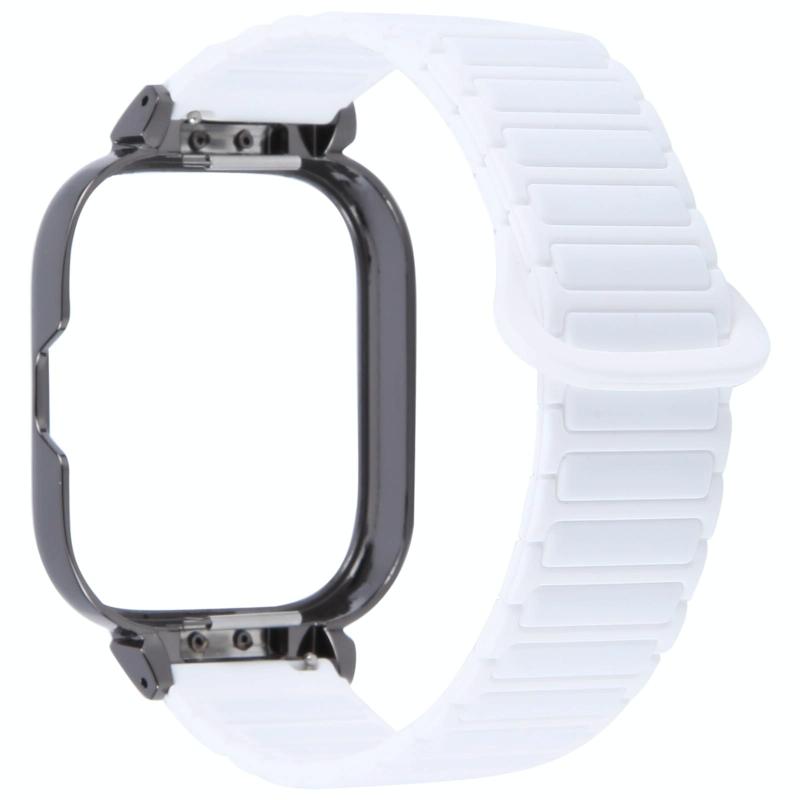 For Redmi Watch 5 / Watch 4 Metal Black Frame Integrated I-shaped Magnetic Silicone Watch Band(Ceramic White)