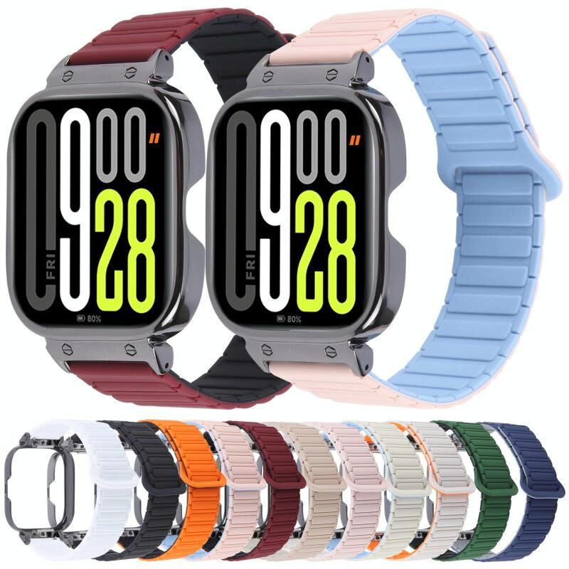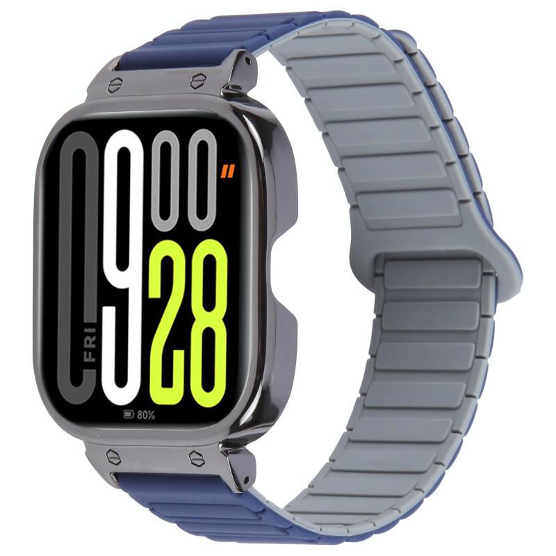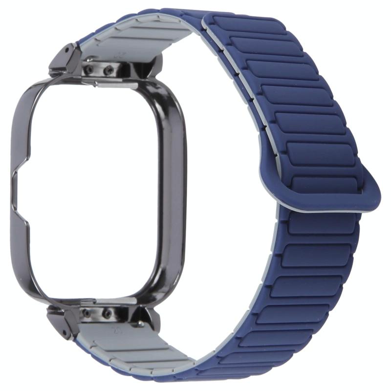 For Redmi Watch 5 / Watch 4 Metal Black Frame Integrated I-shaped Magnetic Silicone Watch Band(Indigo Gray)