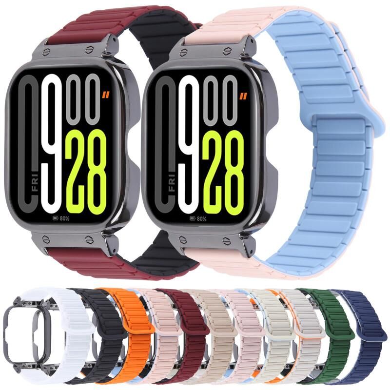 Για το Redmi Watch 5 / Watch 4 Μεταλλικό μαύρο πλαίσιο ενσωματωμένο μαγνητικό λουράκι ρολογιού σιλικόνης σε σχήμα I (πορτοκαλί μαύρο)