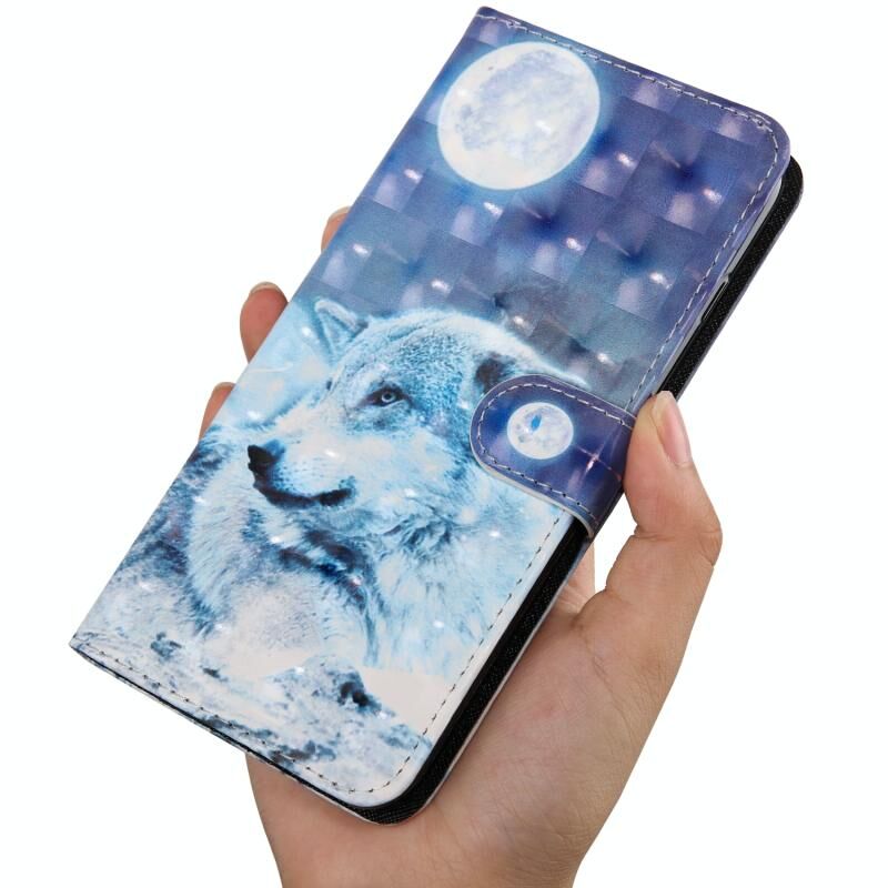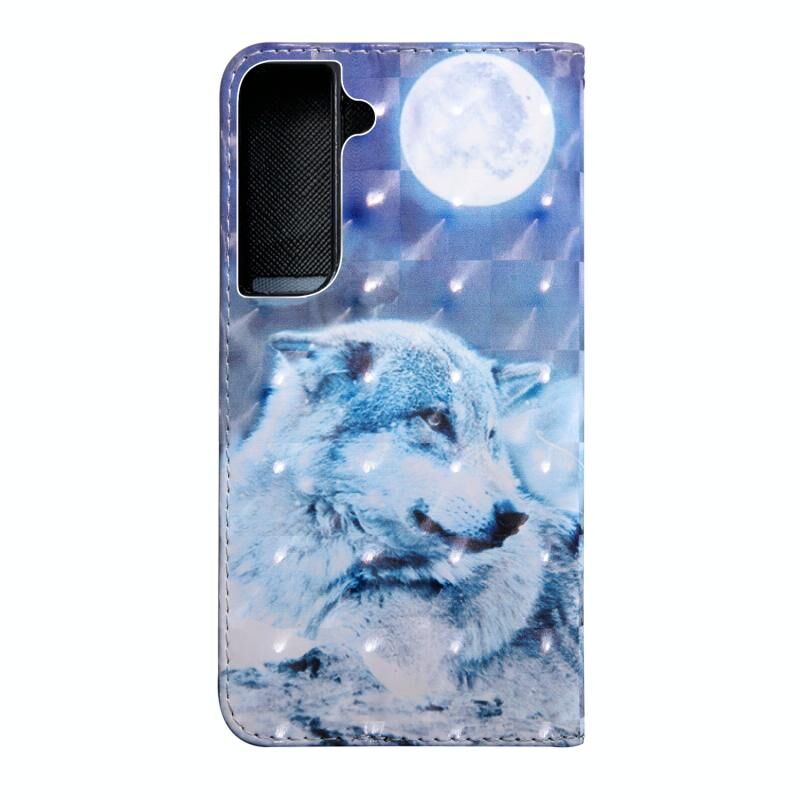 For Samaung Galaxy S22 5G 3D Painted Pattern Horizontal Flip Leather Phone Case with Holder & Lanyard(Moon Wolf)