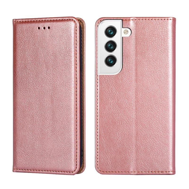 Για Samaung Galaxy S22 5G Καθαρό χρώμα μαγνητική οριζόντια Flip δερμάτινη θήκη με θήκη & υποδοχή για κάρτες & πορτοφόλι (ροζ χρυσό)