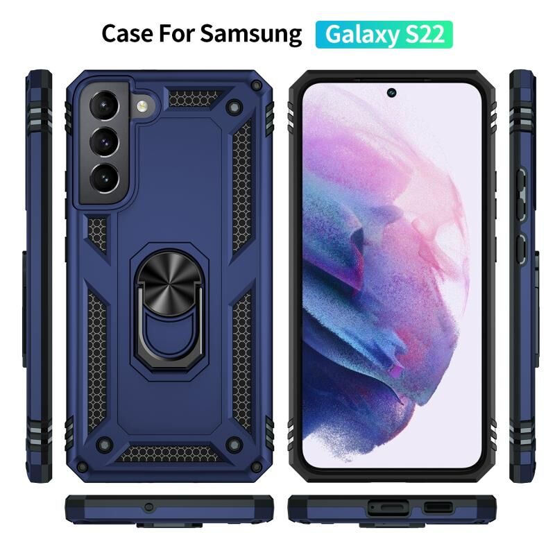 Για Samaung Galaxy S22 5G Shockproof TPU + PC Προστατευτική θήκη με 360 μοίρες περιστρεφόμενη θήκη (μπλε)