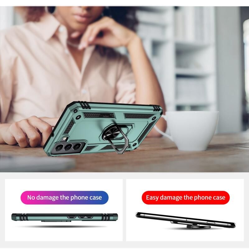 Για Samaung Galaxy S22+ 5G Shockproof TPU + PC προστατευτική θήκη με 360 μοίρες περιστρεφόμενη θήκη (σκούρο πράσινο)