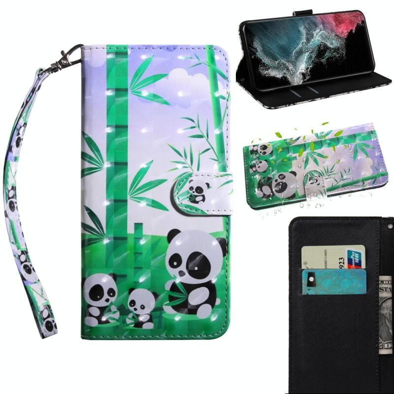 For Samaung Galaxy S22 Ultra 5G 3D Painted Pattern Horizontal Flip Leather Phone Case with Holder & Lanyard(Bamboo Panda)