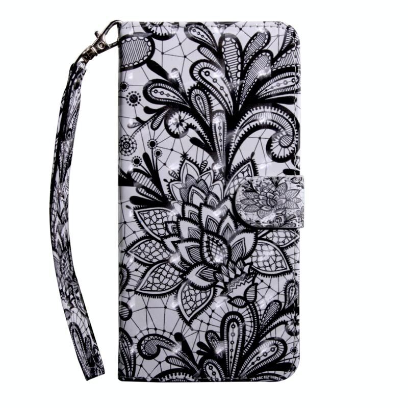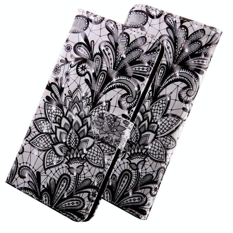 For Samaung Galaxy S22 Ultra 5G 3D Painted Pattern Horizontal Flip Leather Phone Case with Holder & Lanyard(Black Lace)