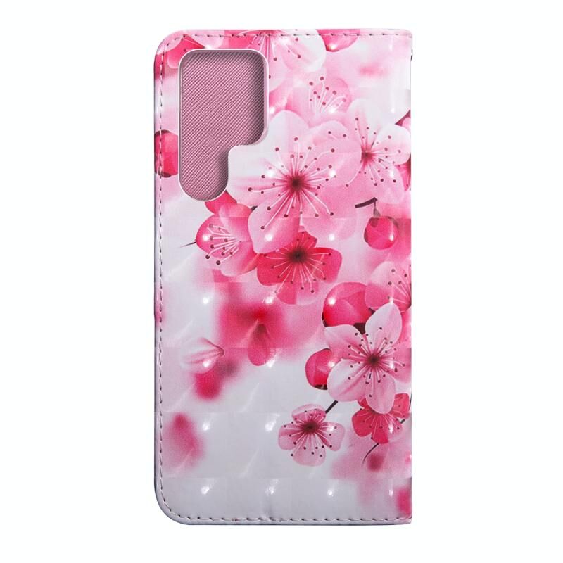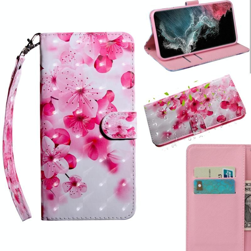 For Samaung Galaxy S22 Ultra 5G 3D Painted Pattern Horizontal Flip Leather Phone Case with Holder & Lanyard(Red Flower)