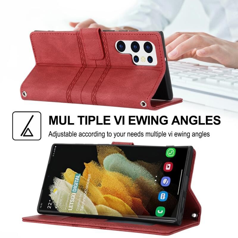 Για Samaung Galaxy S22 Ultra 5G ανάγλυφο ριγέ μαγνητική πόρπη οριζόντια Flip τηλέφωνο δερμάτινη θήκη (κόκκινο)
