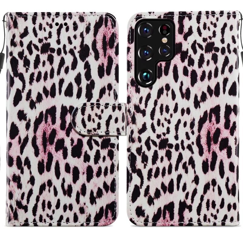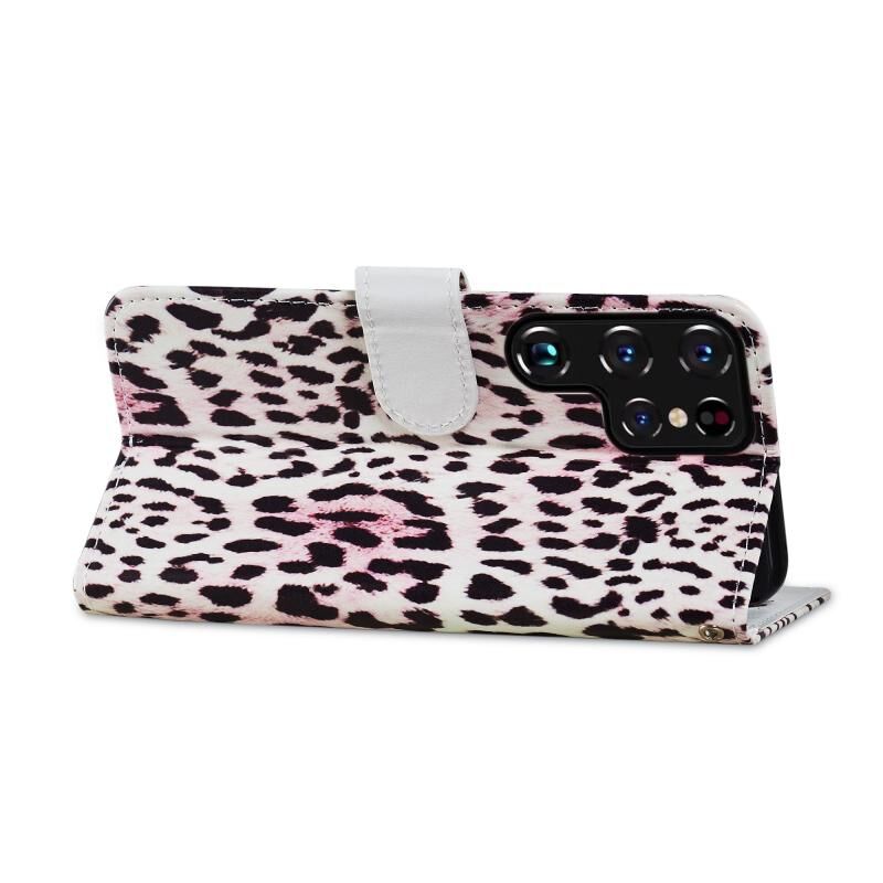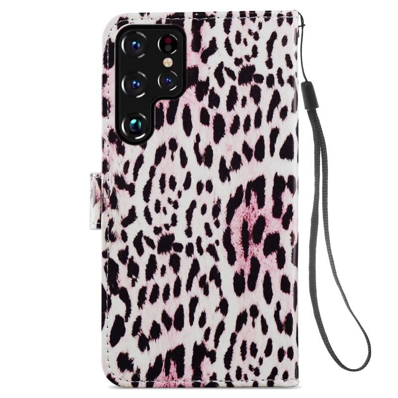 Θήκη τηλεφώνου Samsung Galaxy S22 Ultra 5G από δέρμα με οριζόντιο άνοιγμα, ζωγραφισμένο σχέδιο, με βάση στήριξης & θήκες καρτών & κορνίζα φωτογραφιών (Λεοπάρδαλη)