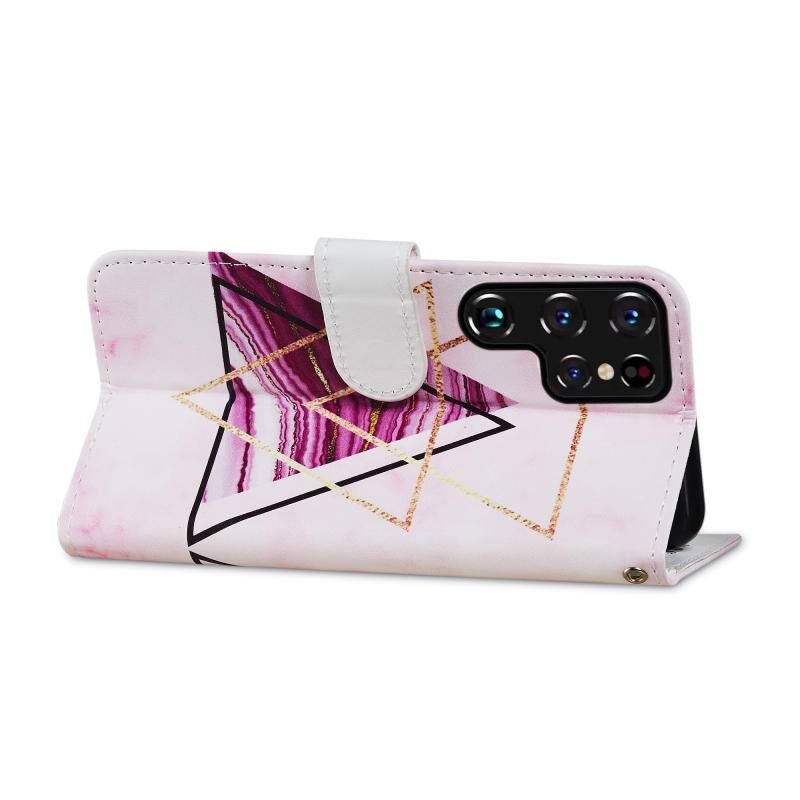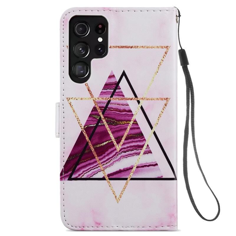 Θήκη τηλεφώνου Samsung Galaxy S22 Ultra 5G από δέρμα με οριζόντιο άνοιγμα, ζωγραφισμένο σχέδιο, με βάση στήριξης & θήκες καρτών & κορνίζα φωτογραφιών (Μαρμάρινη τριών χρωμάτων)