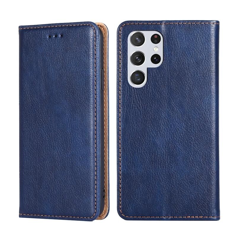 Για Samaung Galaxy S22 Ultra 5G Καθαρό χρώμα μαγνητική οριζόντια Flip δερμάτινη θήκη με θήκη & υποδοχή για κάρτες & πορτοφόλι (μπλε)