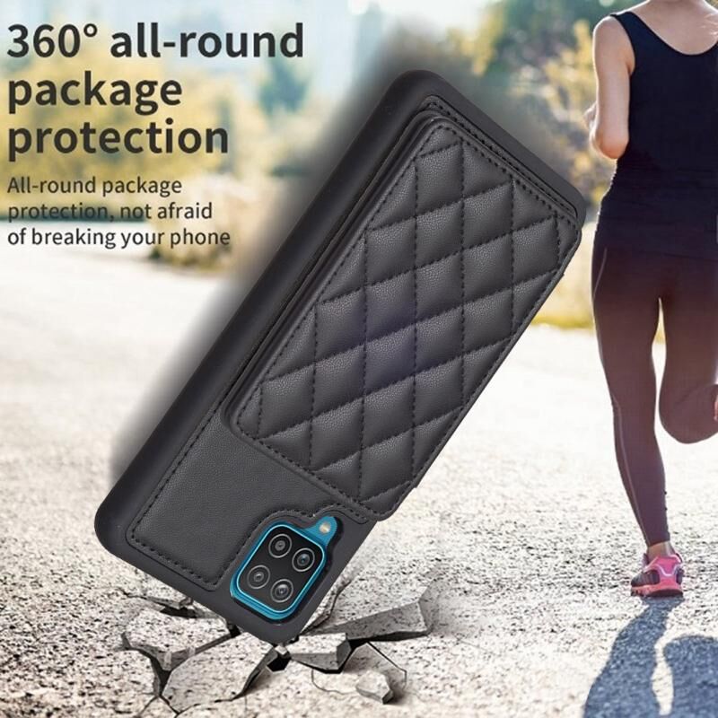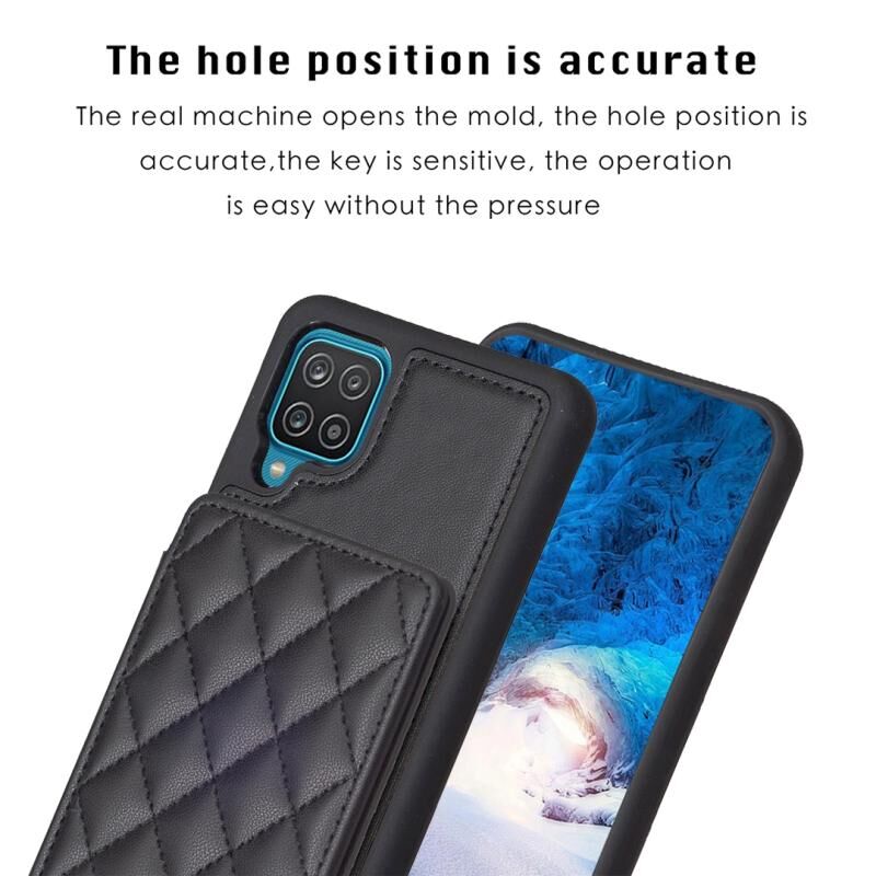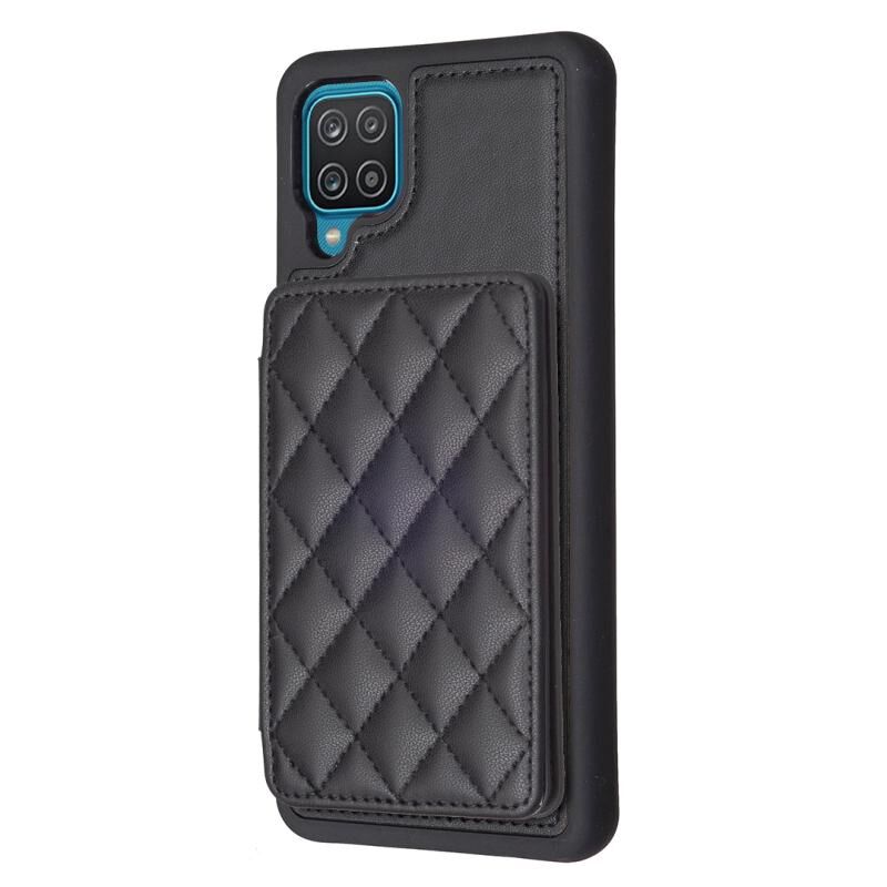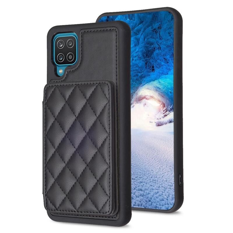 Για Samsug Galaxy A12 BF25 τετράγωνο καρό κάρτα τσάντα κάτοχος υπόθεση τηλεφώνου (μαύρο)