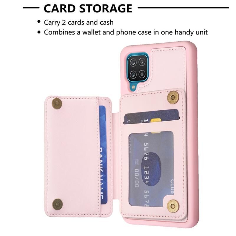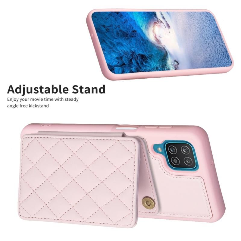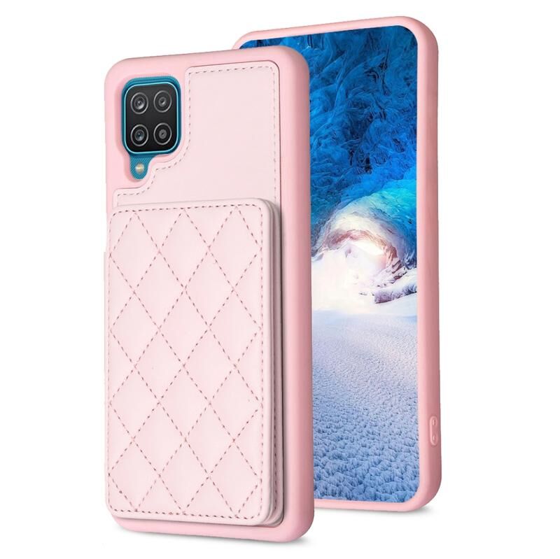 Για Samsug Galaxy A12 BF25 τετράγωνο καρό κάρτα τσάντα κάτοχος υπόθεση τηλεφώνου (ρόζ)