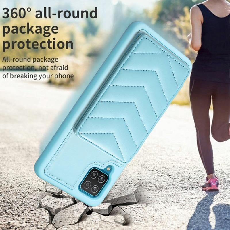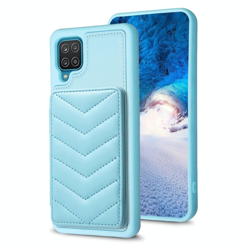 Για Samsug Galaxy A12 BF26 Wave μοτίβο κάρτα τσάντα κάτοχος υπόθεση τηλεφώνου (Μπλε)