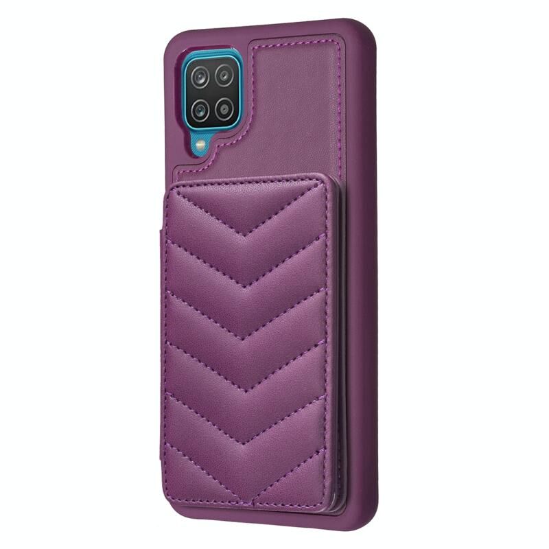 Για Samsug Galaxy A12 BF26 Wave μοτίβο κάρτα τσάντα κάτοχος υπόθεση τηλεφώνου (Σκούρο μωβ)
