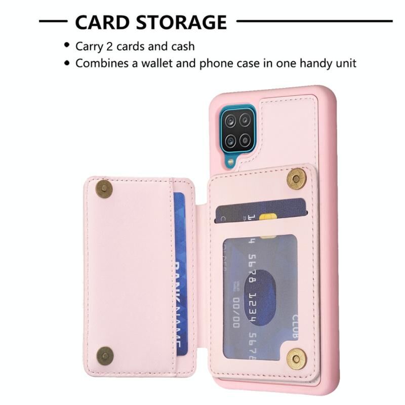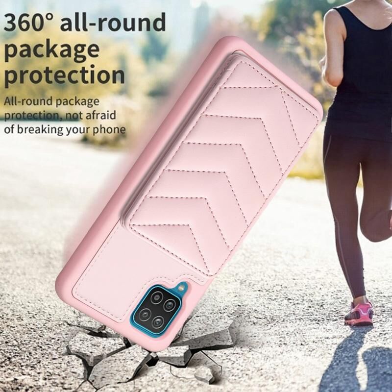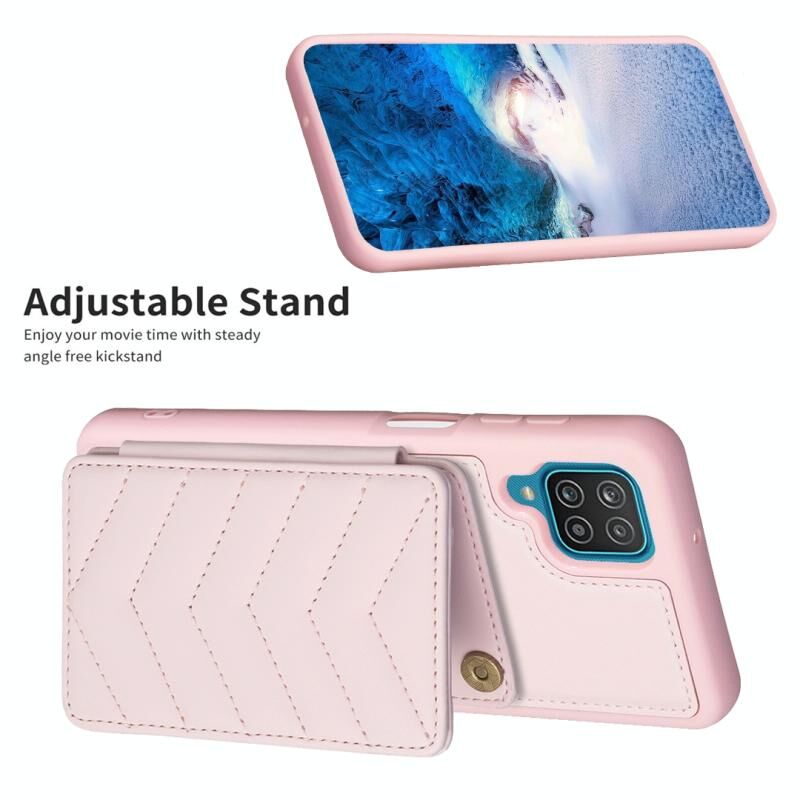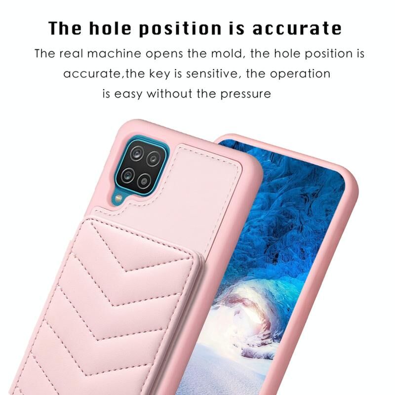 Για Samsug Galaxy A12 BF26 Wave μοτίβο κάρτα τσάντα κάτοχος υπόθεση τηλεφώνου (ρόζ)