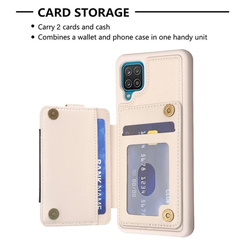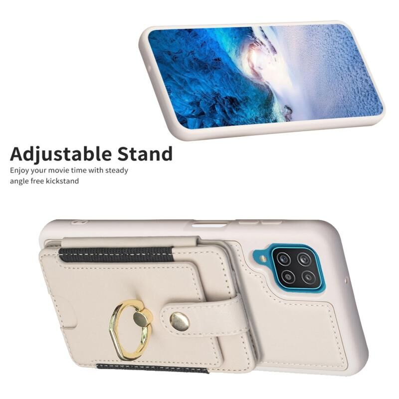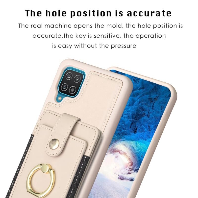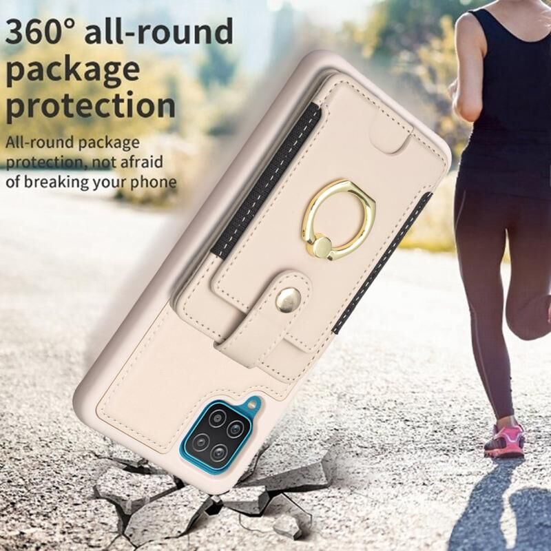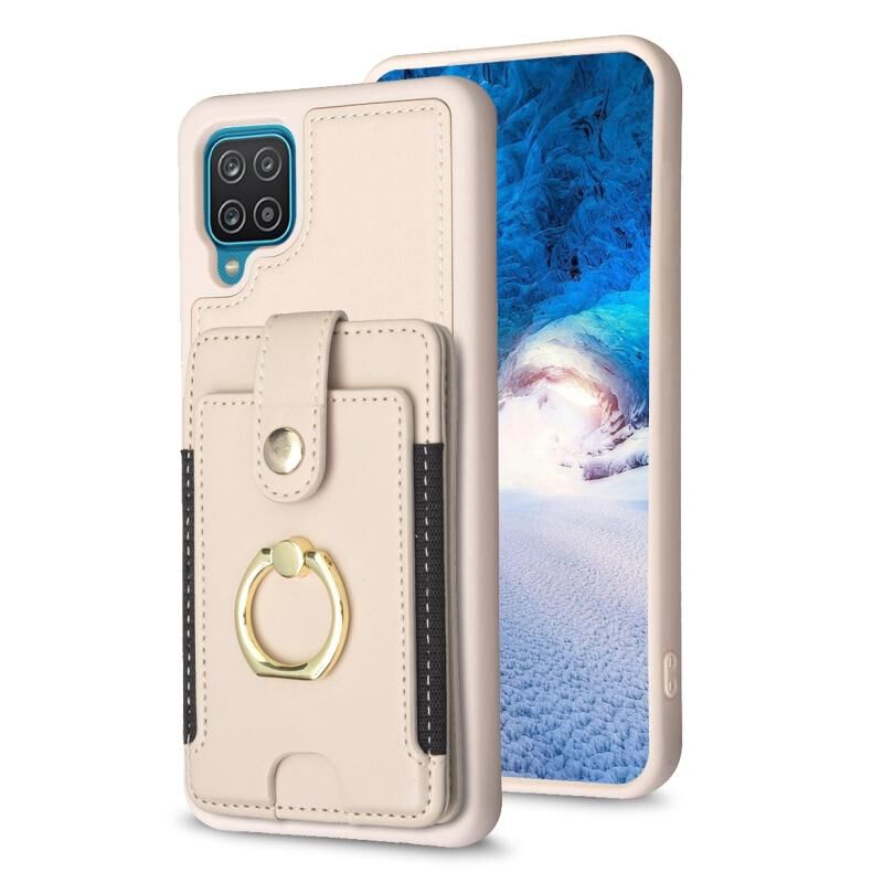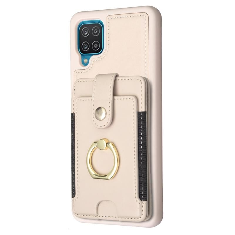 Για Samsug Galaxy A12 BF27 Μεταλλικό δαχτυλίδι τσάντα κάρτα κάτοχος υπόθεση τηλεφώνου (Μπεζ)