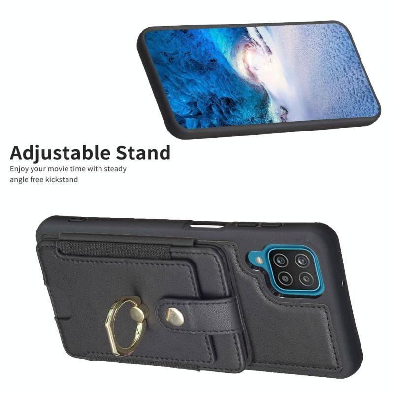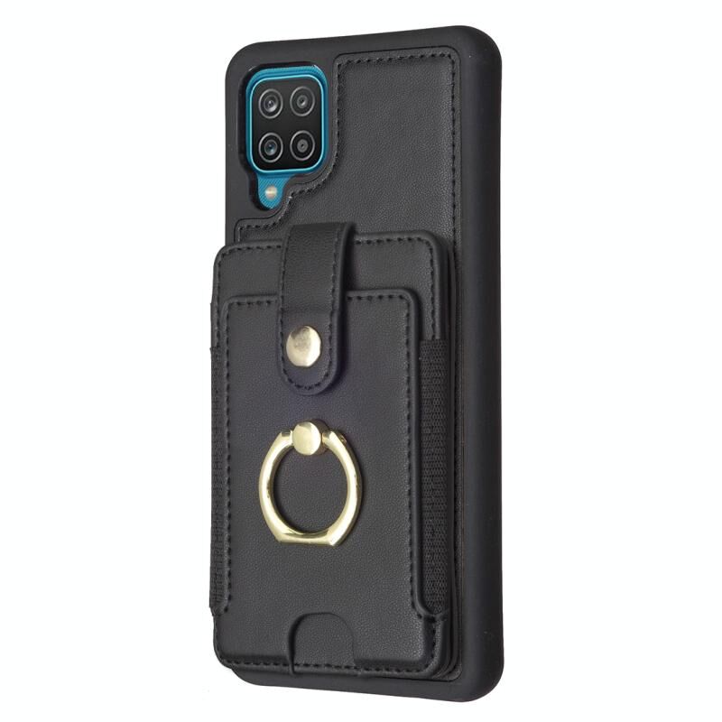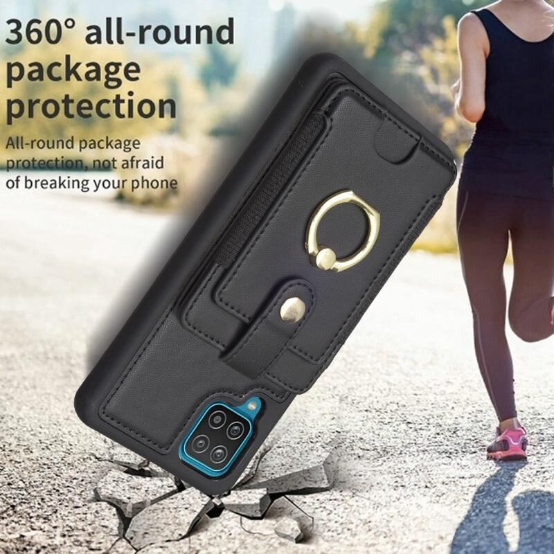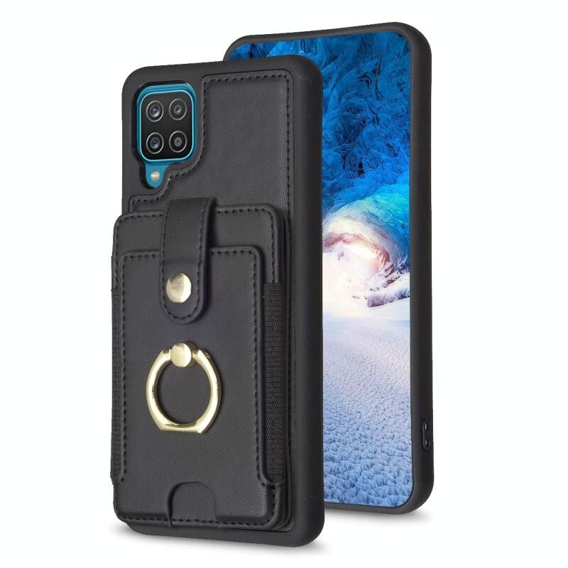 Για Samsug Galaxy A12 BF27 Μεταλλικό δαχτυλίδι τσάντα κάρτα κάτοχος θήκη τηλεφώνου (Μαύρο)