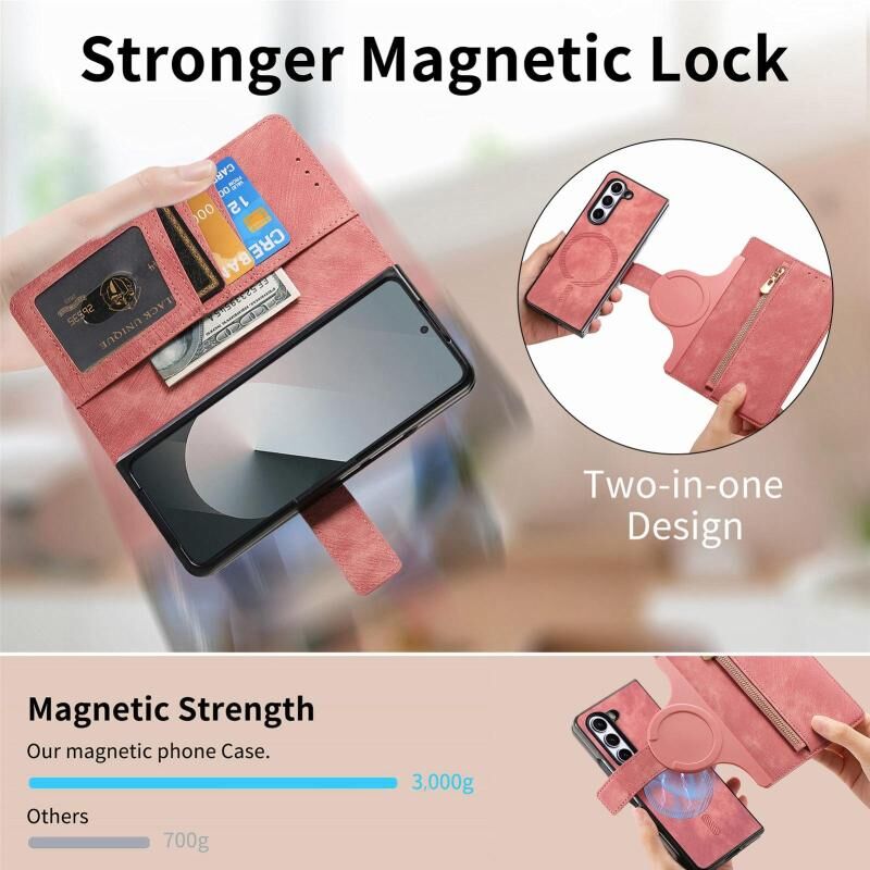 Θήκη τηλεφώνου Samsung Galaxy Z Fold7 5G σε στυλ retro με MagSafe, μαγνητικό φερμουάρ και δερμάτινη κατασκευή (Καφέ)