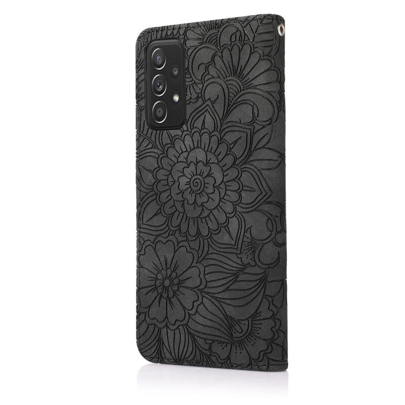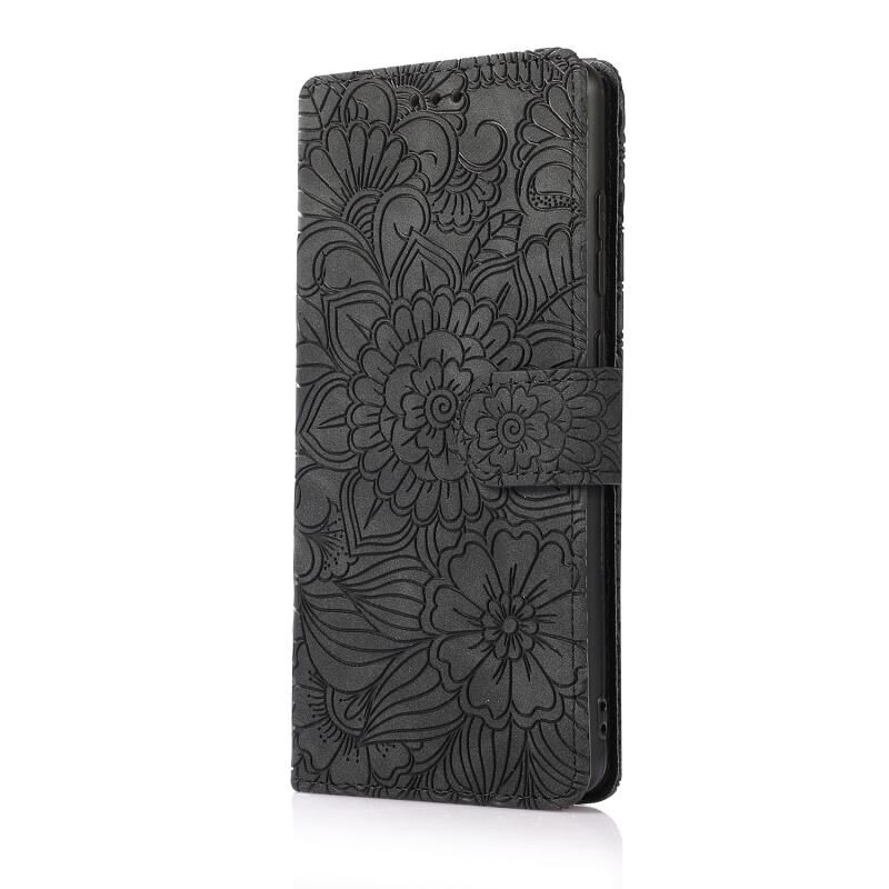 Για Samsung Galaxy 5G / 4G Skin Feel ανάγλυφο ηλιοτρόπιο οριζόντια Flip δερμάτινη θήκη με θήκη & υποδοχές για κάρτες & πορτοφόλι & κορδόνι (Μαύρο)