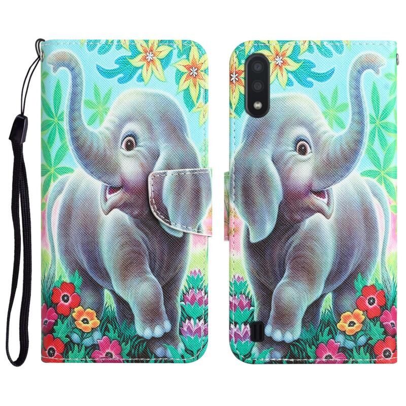 Θήκη τηλεφώνου Samsung Galaxy A01 με σχέδιο ζωγραφικής από δέρμα σε χρώμα (Ελέφαντας)