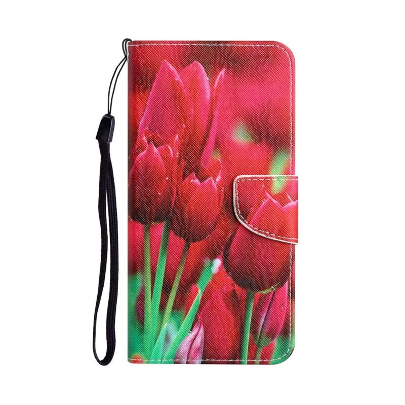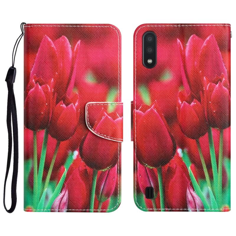 Θήκη τηλεφώνου Samsung Galaxy A01 με σχέδιο πολύχρωμων λουλουδιών (Τουλίπες) από δέρμα.