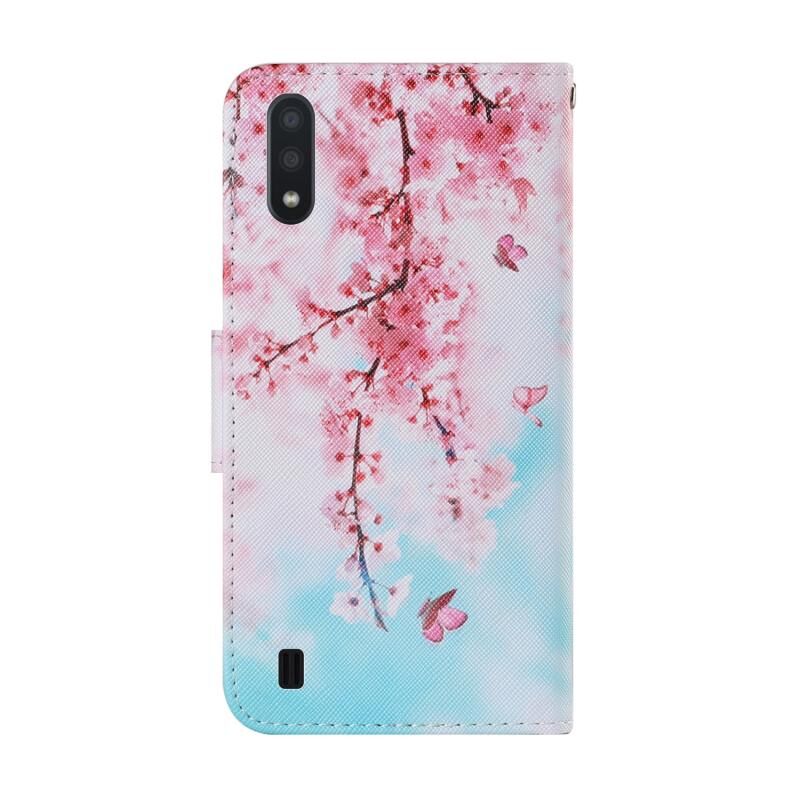 Θήκη Samsung Galaxy A01 με σχέδιο πολύχρωμου σχεδίου, οριζόντια αναδιπλούμενη από δερματίνη PU με βάση στήριξης & υποδοχές καρτών & πορτοφόλι & κορδόνι (Ανθίσματα Κερασιάς)