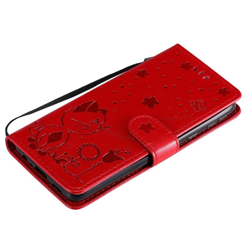 Θήκη Samsung Galaxy A01 Core Cat Bee με ανάγλυφο σχέδιο, αντικραδασμική, οριζόντια, από δέρμα με βάση στήριξης & θήκες καρτών & πορτοφόλι (Μπλε)