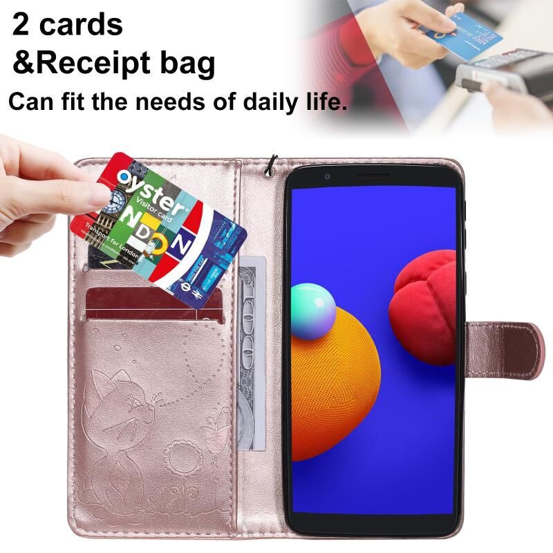 Θήκη Samsung Galaxy A01 Core Cat Bee με ανάγλυφο σχέδιο, αντικραδασμική, οριζόντια, από δέρμα με βάση στήριξης & θήκες καρτών & πορτοφόλι (Μπλε)
