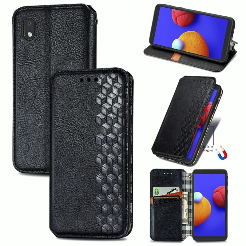 Για Samsung Galaxy A01 Core Cubic Grid Πιεσμένο οριζόντια Flip μαγνητική PU δέρμα υπόθεση με θήκη & υποδοχές για κάρτες & πορτοφόλι (μαύρο)
