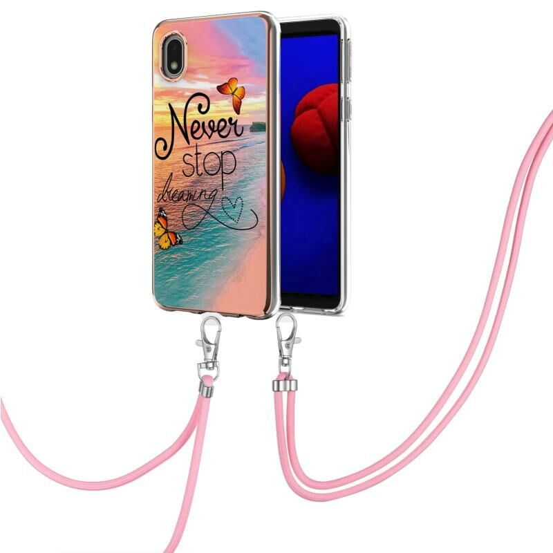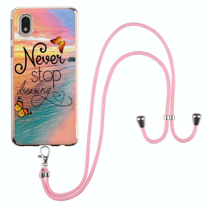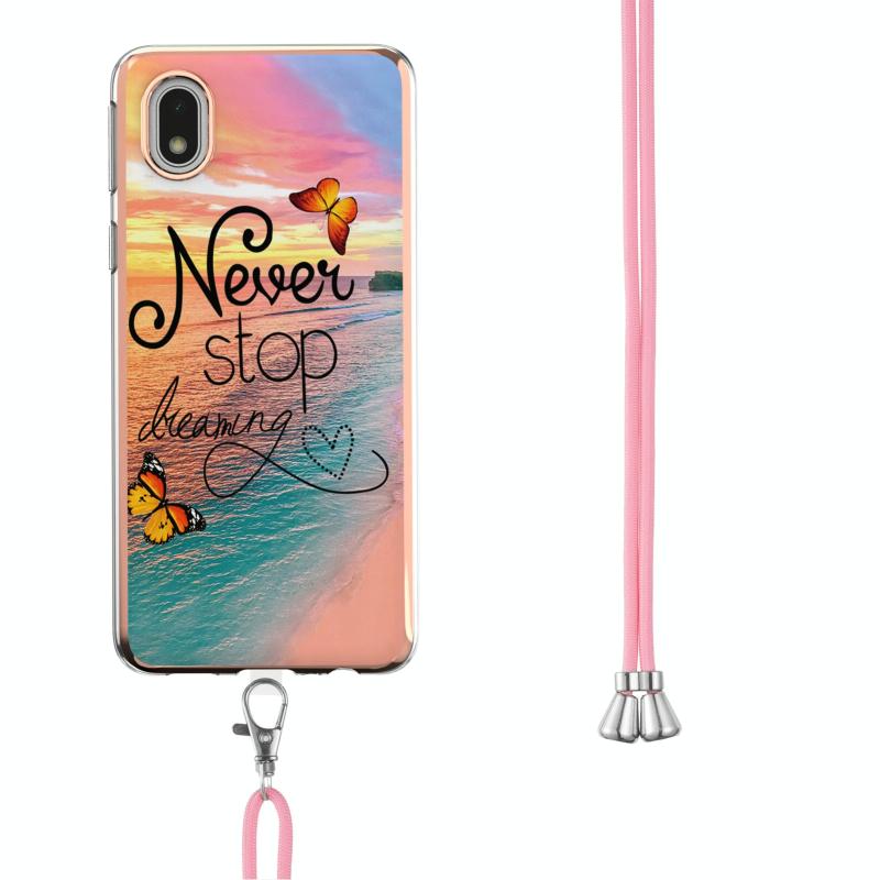 For Samsung Galaxy A01 Core Electroplating Pattern IMD TPU Shockproof Case with Neck Lanyard(Dream Chasing Butterfly)