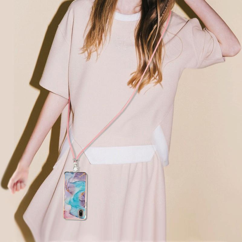 For Samsung Galaxy A01 Core Electroplating Pattern IMD TPU Shockproof Case with Neck Lanyard(Milky Way Blue Marble)