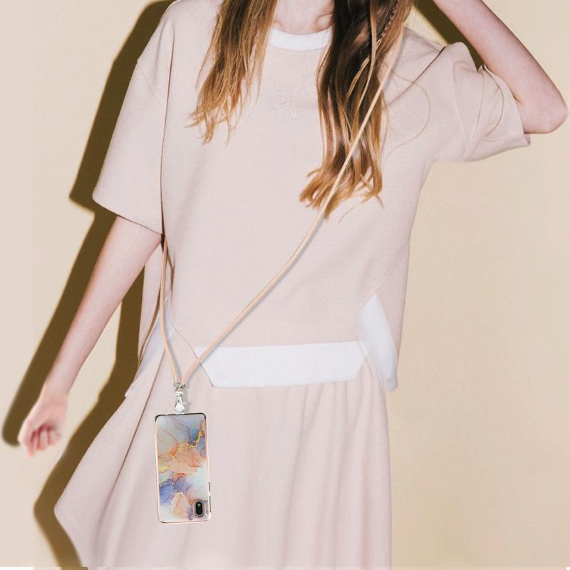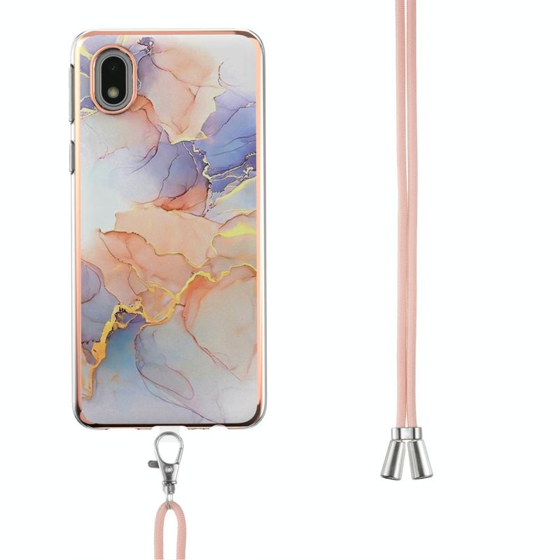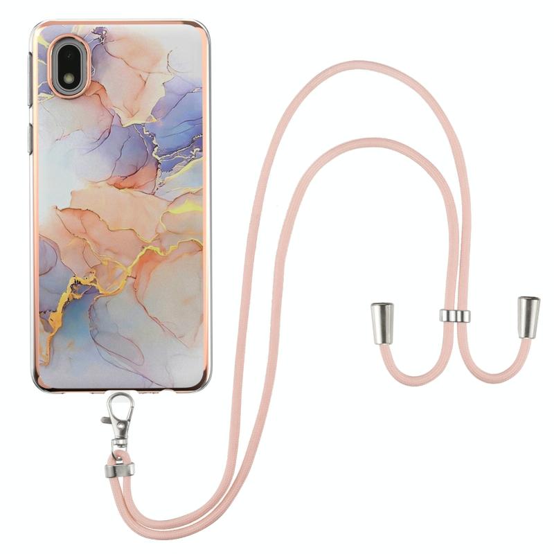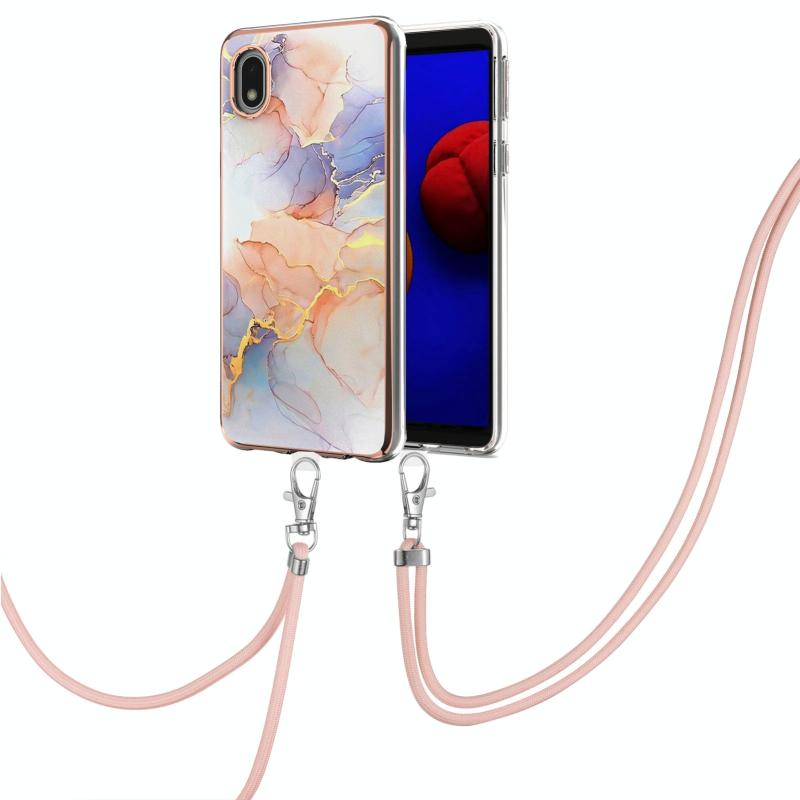 For Samsung Galaxy A01 Core Electroplating Pattern IMD TPU Shockproof Case with Neck Lanyard(Milky Way White Marble)